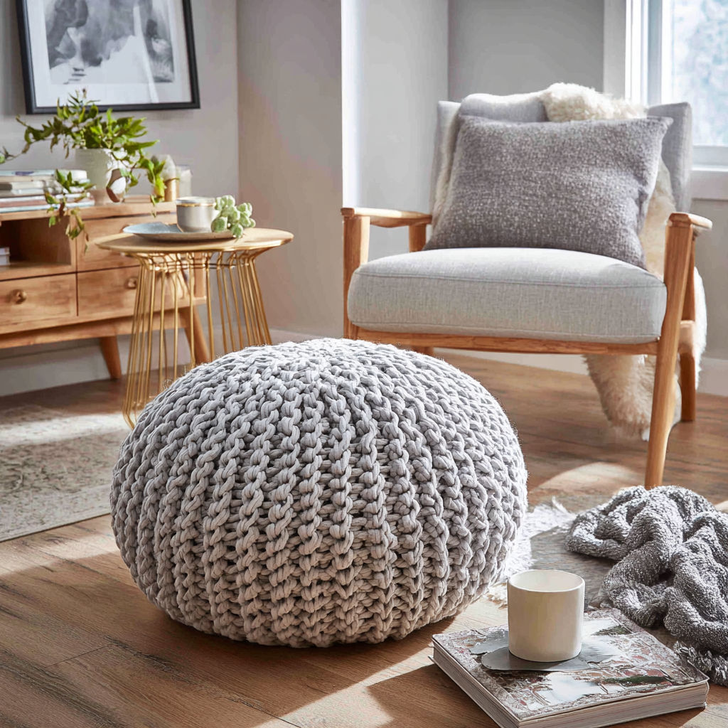 This hand-knitted cotton pouf adds instant coziness and boho charm without taking space.
