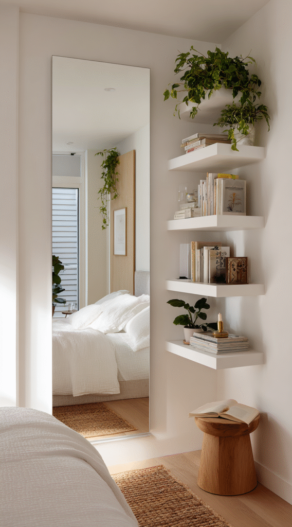 How to Decorate a Teen Room with Shelves Next to Mirror Ideas